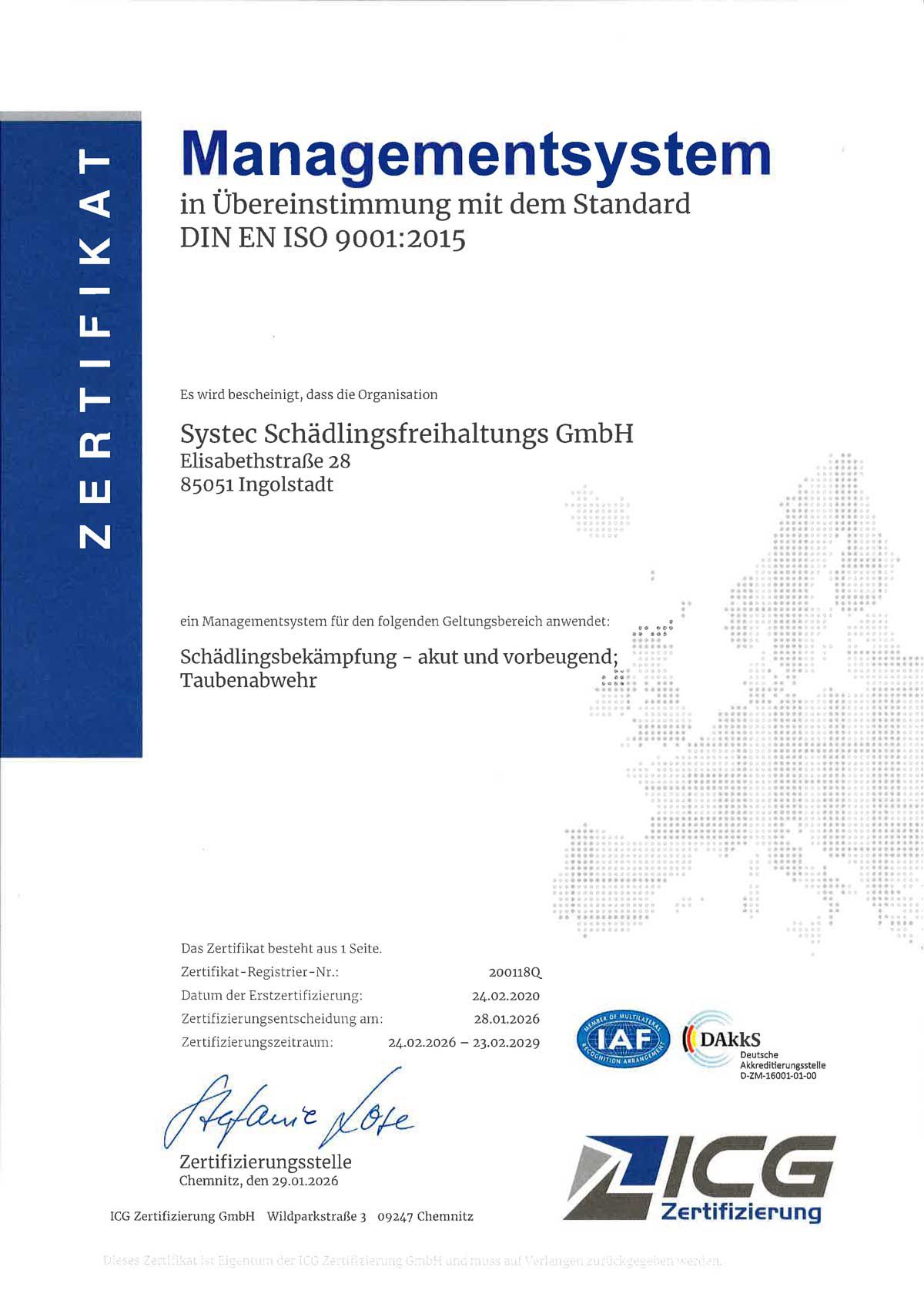 Mit ISO 9001 Zertifizierung gewährleisten wir höchste Qualitätsstandards und dokumentierte Abläufe. Für unsere Vertragskunden garantieren wir eine 24-Stunden-Reaktionszeit bei akuten Befällen.